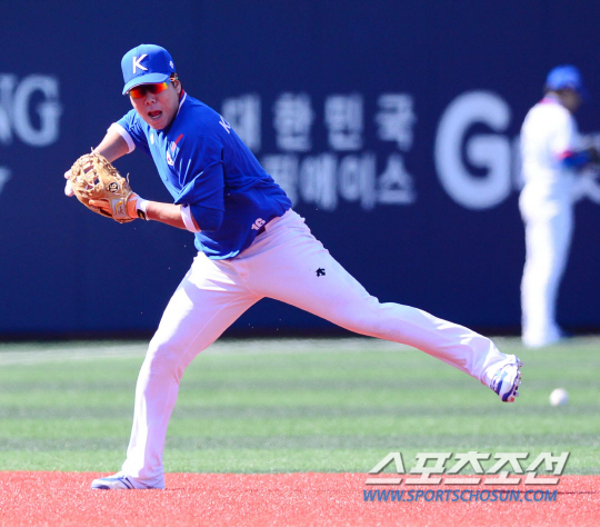 20일 오후 서울 목동야구장에서 2014 인천 아시안게임 한국 야구대표팀의 공식 훈련이 열렸다. 야구대표팀 강정호가 수비 훈련을 하고 있다. 목동=김경민 기자 kyungmin@sportschosun.com / 2014.09.20.