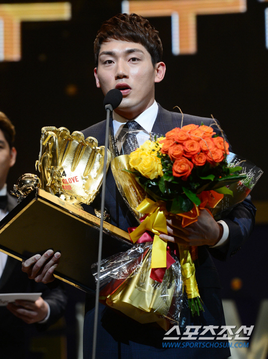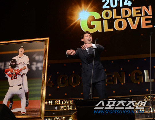 '연봉 대박'과 동시에 내년 시즌에 대한 각오를 다질 수 있게 됐다는 것이다. '신고선수 신화'를 만든 그만의 성실함을 엿볼 수 있는 멘트였다. 이날 역대 최다 수상 기록을 세운 삼성 라이온즈 이승엽(지명타자)도 있었지만, 2루수 부문에서 유효표 321표 중 292표로 91%의 득표율로 황금장갑을 차지한 서건창 역시 충분히 주인공다운 모습이었다.