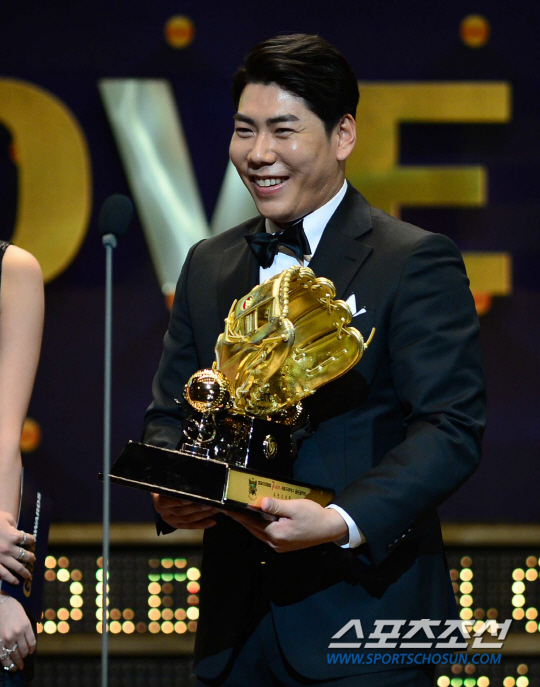올 시즌 프로야구 포지션별 최고의 선수를 선정하여 시상하는 '2014 프로야구 골든글러브 시상식'이 9일 오후 서울 삼성동 코엑스 오디토리움에서 열렸다. 시상식에서 유격수 부문 상을 받은 넥센 강정호가 수상소감을 밝히고 있다. 김경민 기자 kyungmin@sportschosun.com / 2014.12.09. |