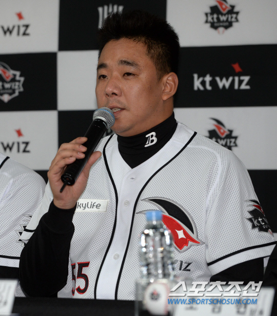 프로야구 제10구단 KT 위즈가 프로야구 개막 D-100일을 맞아 신규 입단 선수(김사율 김상현 박경수 박기혁 배병옥 장시환 장성호 정대현 정현 용덕한 이대형 윤근영 이성민) 기자회견을 가졌다. KT는 롯데와 내년 3월 28일, 사직구장에서 개막 2연전을 펼치고 하루 휴식을 취한 뒤 삼성과 역사적인 첫 홈경기를 치른다. 수원=허상욱 기자 wook@sportschosun.com/2014.12.18/ |