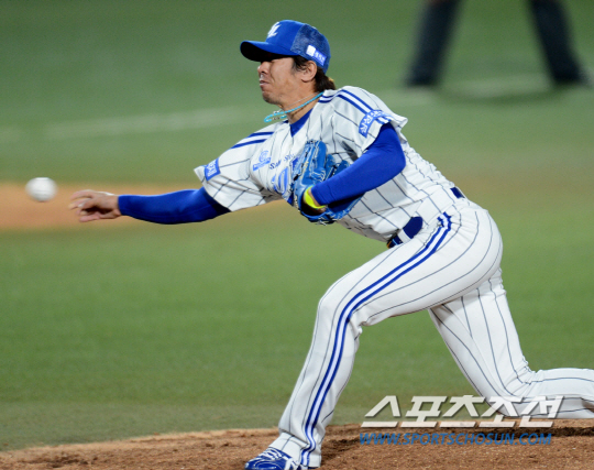 넥센 히어로즈와 삼성 라이온즈의 2014 프로야구 한국시리즈 2차전이 5일 대구구장에서 열렸다. 삼성이 7-1로 앞선 9회 마무리 임창용이 등판해 공을 뿌리고 있다. 대구=정재근 기자 cjg@sportschosun.com/2014.11.05/ |