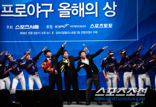3일 서울 논현동 임피리얼팰리스호텔에서 열린 '2014 프로야구 올해의 상' 시상식(스포츠서울 주최, 스포츠토토, 국민체육진흥공단 후원)이 열렸다. 올해의 아마추어상을 수상한 리틀야구 대표팀이 우승 세리머니를 재연하고 있다. 정재근 기자 cjg@sportschosun.com/2014.12.03/ |