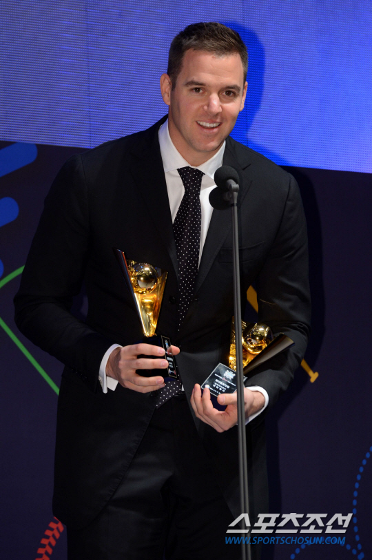 2014 프로야구 최우수선수(MVP)와 최우수신인선수 선정 및 각 부문별 시상식이 18일 오후 서울 양재동 더케이 호텔에서 열렸다. 방어율 1위와 최다 탈삼진상을 수상한 삼성 밴덴헐크가 소감을 전하고 있다. 허상욱 기자 wook@sportschosun.com/2014.11.18/
