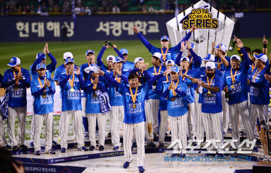 삼성이 넥센을 4승 2패로 누르고 2014 한국시리즈 챔피언에 올랐다. 사상 최초로 통합 4연패를 달성한 삼성은 2000년대 들어 최고의 강팀으로 군림하고 있다. 잠실=조병관기자 rainmaker@sportschosun.com/2014.11.11/ |