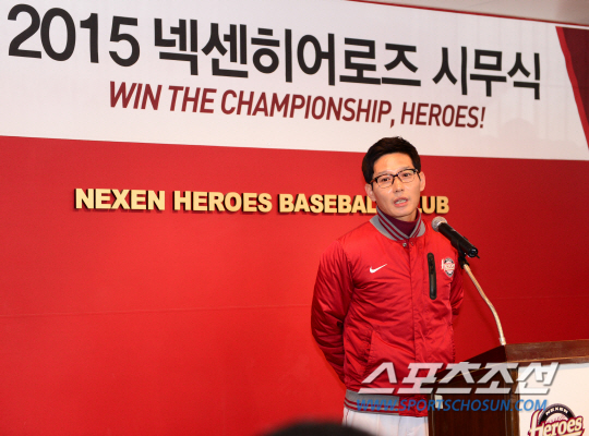 6일 서울 목동구장에서 프로야구 넥센 히어로즈의 2015년도 시무식이 열렸다. 시무식에 참석한 염경엽 감독이 올 시즌에 대한 포부를 밝히고 있다. 넥센은 16일 미국 애리조나로 출국해 애리조나-오키나와를 거치며 전지훈련을 펼친다. 목동=송정헌 기자 songs@sportschosun.com/2015.01.06