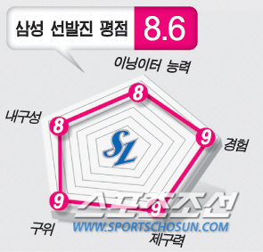 <300자 평>=최고의 제구력을 자랑하는 윤성환과 장원삼이 있다는 것은 삼성으로선 언제나 안정적으로 로테이션을 꾸릴 수 있는 장점이다. 피가로는 일본무대를 경험했고, 빠른 볼과 구위를 가지고 있어 지난해 에이스 역할을 했던 밴덴헐크의 빈자리를 메워줄 것으로 보인다. 클로이드도 제구력과 구위가 좋아 마틴보다 낫다는 평가다. 배영수가 떠난 5선발 자리가 중요한데 일단 정인욱이 가장 좋은 시나리오다. 정인욱이 안정적으로 5선발의 역할을 해준다면 삼성은 지난해 불펜진을 그대로 유지할 수 있다. 만약 정인욱이 선발로 좋지 않아 차우찬이 맡게되면 불펜진에도 변화가 불가피하다.