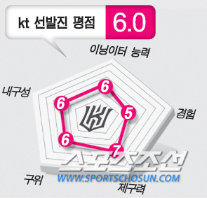 한화(32점), kt(30점), 롯데(29점)는 '3약'이다. 한화는 스토브리그동안 투수력 보강이 계속 이어졌다. 그러나 냉정하게 따지면 확실히 믿을 만한 카드는 여전히 많이 부족하다. 선발진에서 확실한 역할을 해줄 선순느 셰인 유먼밖에 없다. 배영수 송은범 이태양 등은 시즌을 치러봐야 정확한 활약여부를 알 수 있다. 올해 처음으로 1군에 선보이는 kt는 현 시점에서 '대박' 혹은 '쪽박'이다. 잠재력은 무한하지만, 시간이 필요하다는 의미. 롯데는 선발 로테이션을 꾸리기가 쉽지 않다. 조시 린드블럼과 송승준은 확실한 카드다. 그러나 4, 5선발 자체가 없는 상황이다. 장원준의 공백이 더욱 커 보인다. <스포츠1팀>