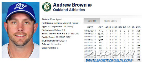 브라운은 2007년 드래프트 18라운드에서 세인트루이스 카디널스의 지명을 받고 입단해 지난해까지 마이너리그 통산 720경기에서 타율 2할8푼6리, 135홈런, 504타점을 기록했다. 메이저리그에는 지난 2011년 데뷔했고, 콜로라도 로키스와 뉴욕 메츠를 거치며 통산 144경기서 타율 2할2푼, 14홈런, 45타점을 때렸다. 지난해에는 메츠에서 19경기에 나가 타율 1할8푼2리, 2홈런, 7타점, 산하 트리플A에서 103경기에 출전해 타율 2할8푼3리, 21홈런, 69타점을 올렸다.