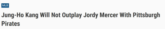 이런 상황에서 미국의 한 언론 매체가 부정적인 보도를 했다. 랜트스포츠 인터넷판은 강정호가 유격수 경쟁자 조디 머서를 넘어서지 못할 것이라는 제목의 기사를 올렸다.