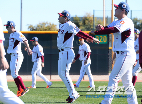 넥센 히어로즈 선수단이 2015 첫 전지훈련에 임했다. 염경엽 감독을 포함하여 총 68명으로 구성 된 선수단 및 프런트는 2월 18일까지 미국 애리조나 서프라이즈에서 1차 훈련을 실시한다. 넥센 선수들이 1차 캠프 첫 훈련에 임하고 있다. 피츠버그에 입단한 강정호가 넥센 선수들과 함께 훈련에 임하고 있다. 서프라이즈(미국 애리조나)송정헌 기자 songs@sportschosun.com/2015.01.18