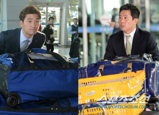 | 전지훈련을 떠나기 위해 인천공항에 온 김상수(삼성)와 손시헌(NC). 스포츠조선DB |