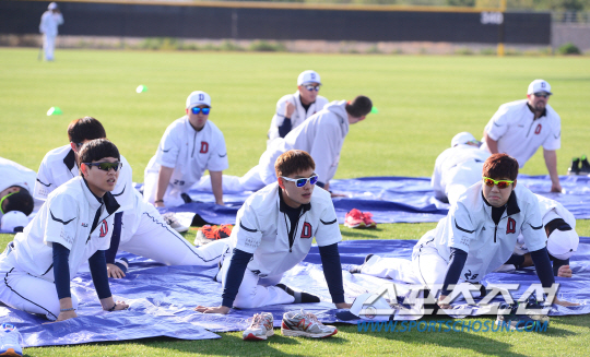 장기간의 미국 애리조나 전지훈련. 두산은 지난 16일 애리조나에 도착, 다음달 15일 일본 미야자키를 이동할 때까지 약 한달 간을 지내야 한다. 몸 컨디션을 끌어올리는 기간으로 3~4일 훈련 뒤 휴식일로 구성돼 있다.