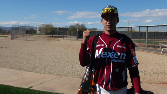 넥센 히어로즈의 애리조나 스프링캠프에 '제2의 서건창'을 노리는 선수가 있다. 현역으로 군복무를 마친 신고선수, 2012년 신인왕이자 지난해 최우수선수(MVP) 서건창과 삶의 궤적이 비슷하다. 넥센 히어로즈 외야수 허정협(25)의 얘기다.