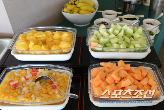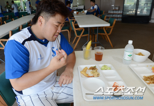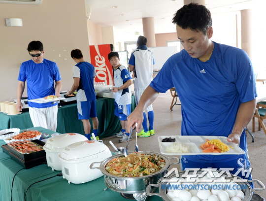 외국에서도 한국에서 먹는 것과 똑같은 식단을 선수들에게 제공한다. 괌에서 전지훈련을 하고 있는 삼성 구단의 식사 제공 원칙이다.