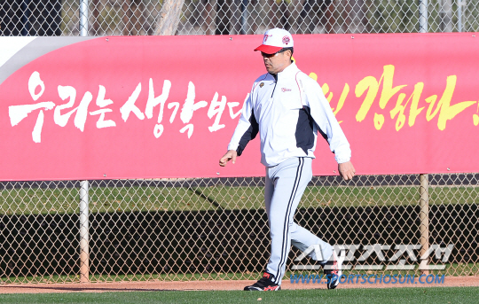 LG 트윈스가 미국 애리조나 피닉스의 글렌데일 다저스 스프링캠프장에서 전지훈련에 임했다. LG 양상문 감독이 그라운드를 걸이며 몸을 풀고 있다. 글렌데일(미국 애리조나) 송정헌 기자 songs@sportschosun.com/2015.01.21