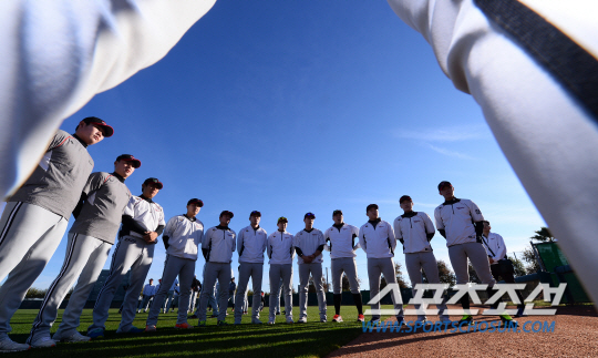 LG 트윈스가 미국 애리조나 피닉스의 글렌데일 다저스 스프링캠프장에서 전지훈련에 임했다. 이번 1차 캠프에는 양상문 감독을 비롯해 코칭스태프 13명, 선수 41명 등 총 54명의 선수단이 참가했다. 본격적인 훈련 전 선수단이 미팅을 갖고 있다. 글렌데일(미국 애리조나) 송정헌 기자 songs@sportschosun.com/2015.01.19