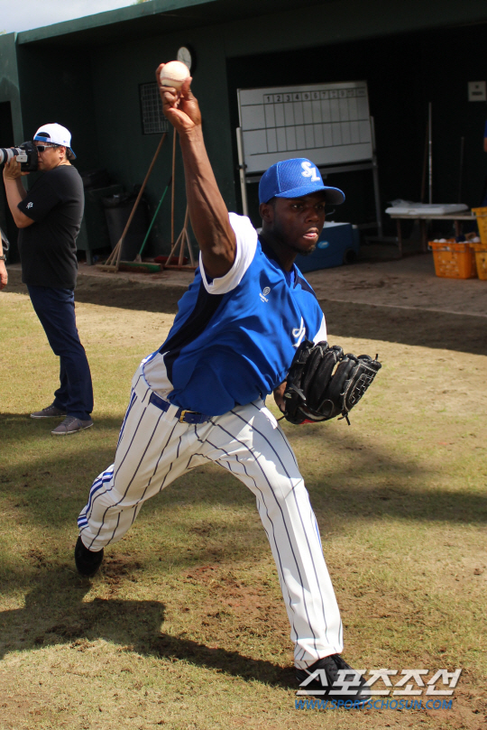 삼성 새 외국인 투수 피가로가 연습 피칭을 하고 있다. 괌=권인하 기자 indyk@sportschosun.com