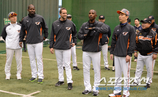 한화 이글스가 일본 고치의 시영구장과 동부구장에서 2015 스프링캠프를 펼치고 있다. 26일 고치의 시영구장에서 어제저녁 팀에 합류한 유먼, 모건, 탈보트가 선수들과 상견례를 갖고 있다. 한화는 2015 전지훈련을 3월 3일까지 48일 동안 일본 고치와 오키나와에서 실시한다. 김성근 감독을 포함한 코칭스태프 23명과 주장 김태균을 포함해 선수 46명, 총 69명의 한화 이글스 선수단은 고치 시영구장과 동부구장에서 전지훈련을 진행한 후 2월15일 일본 오키나와로 이동해 고친다 구장에서 3월3일까지 전지훈련을 진행한다. 고치(일본)=허상욱 기자 wook@sportschosun.com/2015.01.26/