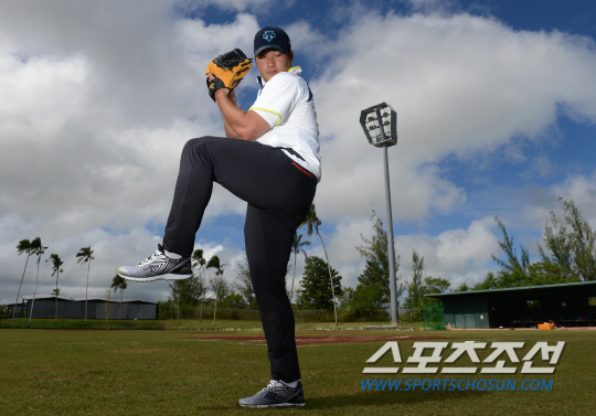 | 한신 타이거즈 오승환이 괌에서 한 달 동안 뜨거운 개인 훈련을 했다. 23일 괌 레오팰리스 리조트에서 막바지 훈련 중인 오승환이 힘차게 와인드업을 하고 있다.오승환은 25일 귀국한 뒤 27일 다시 오사카로 떠나 한신 타이거즈 전지훈련에 합류한다.괌=정재근 기자 cjg@sportschosun.com/2015.01.23/ |