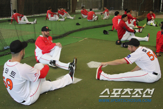 브라운은 다른 타자들과 함께 타격 훈련을 소화하고 있다. 김 감독은 "처음에 영상을 보고 느낀대로 파워가 느껴지고 스윙이 빠르다. 4번을 치든 5번을 치든 충분히 자기 능력을 보여줄 수 있을 거라 생각한다"며 기대감을 나타냈다. 브라운은 메이저리그 144경기 출전 경험이 있다. 그러나 풀타임을 채운 적은 없다. 지난해 뉴욕 메츠 산하 트리플A에서 103경기에 나가 타율 2할8푼3리, 21홈런, 69타점을 기록했다. 크지 않은 체구(키 1m83, 몸무게 91㎏)지만, 단단함과 순발력이 느껴지는 인상이다.