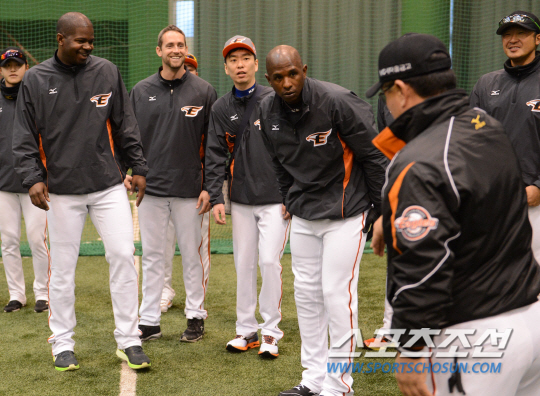 한화 이글스가 일본 고치의 시영구장과 동부구장에서 2015 스프링캠프를 펼치고 있다. 26일 고치의 시영구장에서 어제저녁 팀에 합류한 유먼, 모건, 탈보트가 선수들과 상견례를 갖고 있다. 한화는 2015 전지훈련을 3월 3일까지 48일 동안 일본 고치와 오키나와에서 실시한다. 김성근 감독을 포함한 코칭스태프 23명과 주장 김태균을 포함해 선수 46명, 총 69명의 한화 이글스 선수단은 고치 시영구장과 동부구장에서 전지훈련을 진행한 후 2월15일 일본 오키나와로 이동해 고친다 구장에서 3월3일까지 전지훈련을 진행한다. 고치(일본)=허상욱 기자 wook@sportschosun.com/2015.01.26/