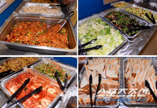 점심메뉴는 아침보다는 좀 더 풍성하다. 한식에 기반을 두고 식단을 구성하지만 선수들의 다양한 입맛과 영양을 고려해 빵이나 샐러드 등도 추가한다. 식사는 상황에 따라 도시락이나 뷔페식으로 제공된다.
