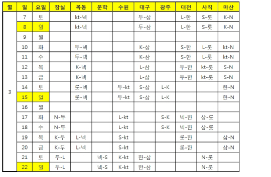 2015시즌 프로야구 시범경기 일정이 나왔다.