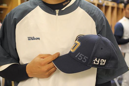 NC선수단이 간절한 마음을 모자에 새겼다. 미국전지훈련중인 선수단은 최근 155를 모자에 새겼다. 바로 원종현(28) 때문이다. 대장암 수술을 받고 회복중인 동료가 하루빨리 돌아오기를 바라는 마음에서다. 155는 155㎞를 뜻한다. 원종현은 지난해 155 km 광속구를 뿌리며 화려한 부활을 한 바 있다.