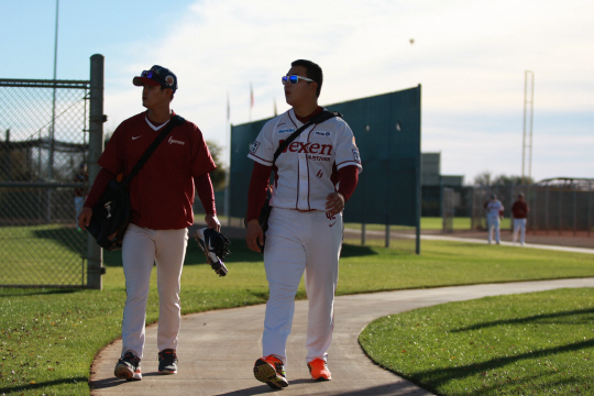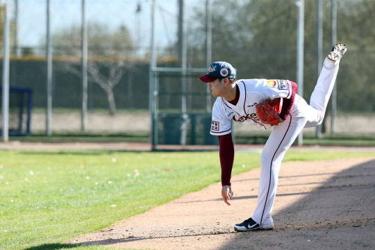 김정훈은 최근 애리조나 스프링캠프에서 140㎞ 중후반대의 공을 시원하게 던지고 있다. 아직 100%의 힘을 쓰지 않는 걸 감안하면, 150㎞짜리 강속구도 기대해볼 만하다.
