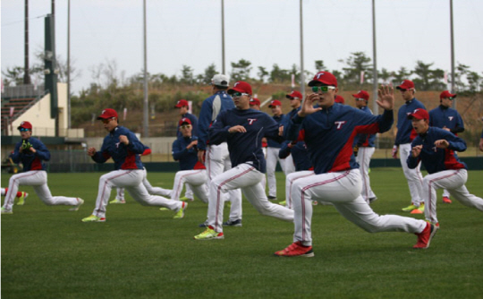 | KIA 선수들이 본격적인 훈련에 앞서 스트레칭을 하는 모습. 사진제공=KIA 타이거즈 |