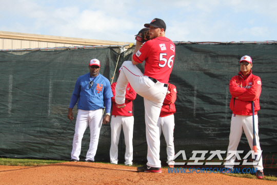 투수 2명은 조금씩 던지고 있는데 아직 본격적인 피칭 단계는 아니다. 시간적인 여유를 가지고 있다. 빠르게 하지는 않고 있다. 캠프가 아니라 시즌 개막까지 컨디션을 올리는 게 중요하다. 브라운도 마찬가지다. 연습경기에 나가 스트라이크존에 적응하고 있다. 계속해서 경기에 나가면 적응이 될 것이다. 미국 스트라이크존하고는 차이가 있기 때문에 여러가지를 감안하면 시간적으로 필요하다고 볼 수 있다.