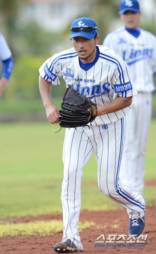 삼성 선수들이 괌 전훈 5일째 훈련을 했다. 20일 괌 레오팰리스 리조트 훈련장에서 삼성 선수들이 뜨거운 태양 아래서 구슬땀을 흘렸다. 권오준이 수비 훈련을 하고 있다.