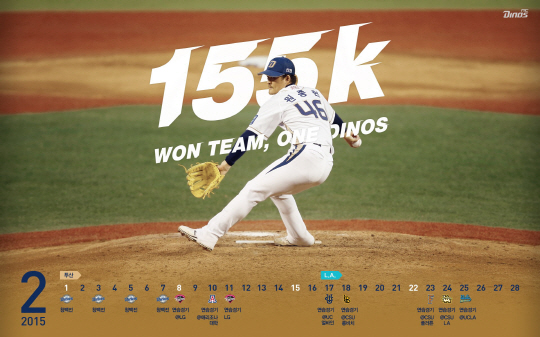 'WON'은 원종현, 한글로 하나, 승리를 뜻하는 WIN 등 합축적인 의미를 담았다. NC구단은 지난 10일 이같은 캐치프레이즈를 담은 2월 월페이퍼(컴퓨터 배경화면)를 만들었다. 시속 155㎞ 광속구를 뿌리는 원종현의 시원스런 피칭모습이 담겼다.