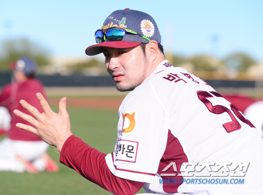 넥센 히어로즈가 미국 애리조나 서프라이즈에서 스프링캠프 전지훈련을 펼쳤다. 넥센은 염경엽 감독을 포함하여 총 68명으로 선수단 및 프런트는 2월 18일까지 미국 애리조나에서 1차 훈련을 실시한다. 본격적인 훈련을 앞두고 박병호가 스트레칭으로 몸을 풀고 있다. 서프라이즈(미국 애리조나)송정헌 기자 songs@sportschosun.com/2015.01.26