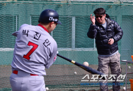 시즌 준비가 바쁜 것이 선수들 못지 않다. 그라운드에서 조금은 벗어난 제2의 인생. 지금은 취재와 인터뷰, 방송 해설이라는 낯선 일에 적응해야 하는 시기다. KBS N 스포츠의 송진우, 안치용 해설위원이 13일 SK 와이번스 전훈지인 일본 오키나와 캠프 구시가와 구장을 찾았다. 이들은 SK를 비롯해 KIA 타이거즈, 삼성 라이온즈, 한화 이글스, LG 트윈스 등을 취재하기 위해 4일전 오키나와로 출장을 왔다. 하루하루가 바쁠 수 밖에 없다. 한때 동료였고, 선후배, 스승과 제자 사이였던 이들과 다시 만나 감회도 새롭다. 그라운드를 떠난 지 얼마 안된 '덕분'에 후배들에게 원포인트 레슨까지 해주며 현장을 즐기고 있다.