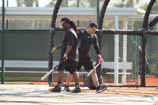 | 프리배팅을 하고 있는 피츠버그 파이어리츠의 강정호와 앤드류 맥커친. 사진=피츠버그 구단 트위터 |