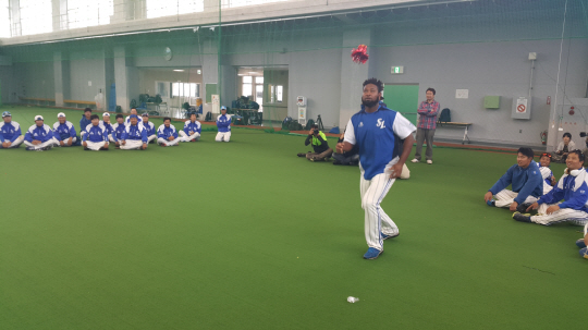 삼성 라이온즈 외국인 타자 나바로가 제기차기 대회에서 깜짝 활약을 했다.
