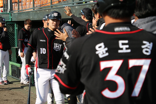 일본 가고시마 2차 캠프로 옮겨 실전을 치르기 시작한 막내 kt 위즈. 19일 가모이케구장에서 열린 롯데 자이언츠와의 첫 경기에서 3대1로 승리, 기분 좋은 출발을 했다. 한국 프로팀과의 첫 실전에서 승리를 거뒀다는 점도 고무적이지만 올시즌 큰 기대를 모으고 있는 두 선수가 좋은 활약을 보여준 것도 고무적이었다.