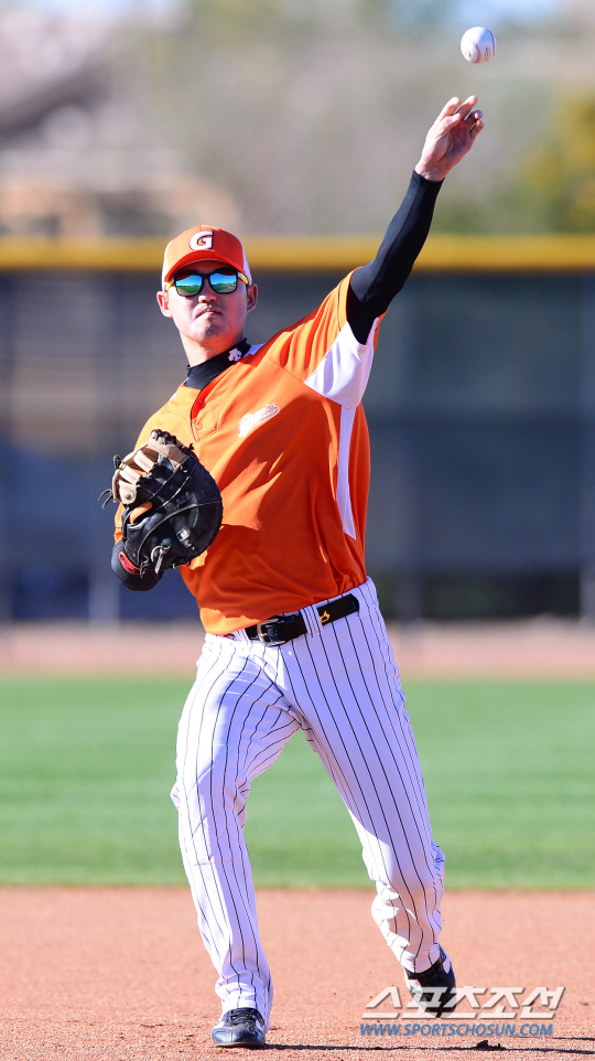 롯데 자이언츠가 미국 애리조나 피닉스 피오리아 스프링캠프에서 전지훈련을 펼쳤다. 롯데 애리조나 캠프는 코칭스태프와 선수단 60명으로 구성되어 2월12일까지 훈련을 한 후 일본 가고시마 캠프로 이동한다. 박종윤이 캐치볼 훈련을 하고 있다. 피오리아(미국 애리조나) 송정헌 기자 songs@sportschosun.com/2015.01.25