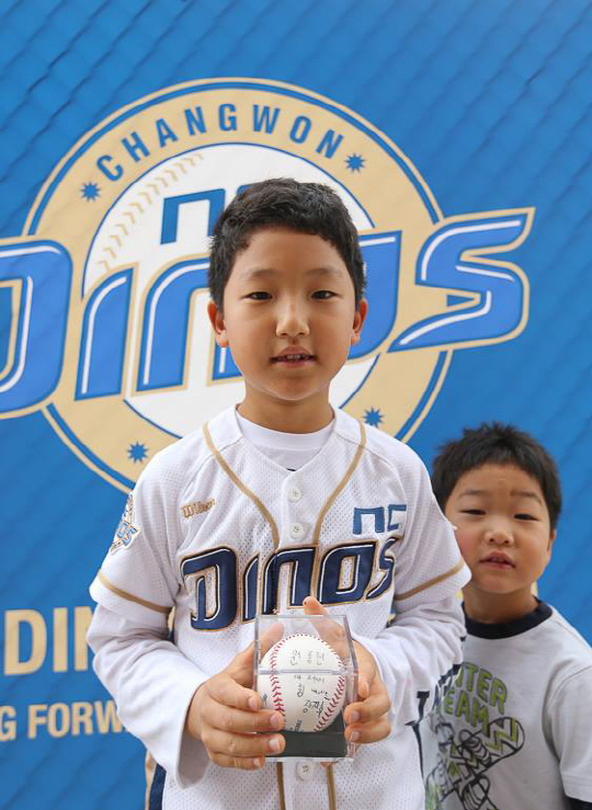 LA 한 어린이팬이 손에 든 야구공. 원종현에 대한 응원메시지가 담겨져 있다. NC다이노스 페이스북