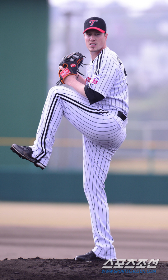 상대는 일본 센트럴리그 주니치 드래곤즈. 24일 일본 오키니와 차탄구장에서 벌어진 연습경기에서 첫 선발 등판했다. 3이닝 2실점. 총 투구수는 62개. 직구 최고 구속은 147㎞를 찍었다. 직구와 변화구(슬라이더 체인지업 커브)구위는 좋았다. 주자가 있을 때 제구가 흔들렸다.