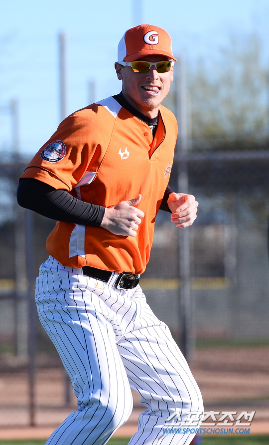 롯데 자이언츠가 미국 애리조나 피닉스 피오리아 스프링캠프에서 전지훈련을 펼쳤다. 롯데 애리조나 캠프는 코칭스태프와 선수단 60명으로 구성되어 2월12일까지 훈련을 한 후 일본 가고시마 캠프로 이동한다. 본격적인 훈련을 앞두고 롯데 선수들이 몸을 풀고 있다. 몸을 풀고 있는 짐 아두치. 피오리아(미국 애리조나) 송정헌 기자 songs@sportschosun.com