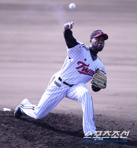LG 트윈스 외국인 선발 헨리 소사가 첫 실전 피칭을 무난하게 마쳤다. 3이닝 2안타 2볼넷 3탈삼진.