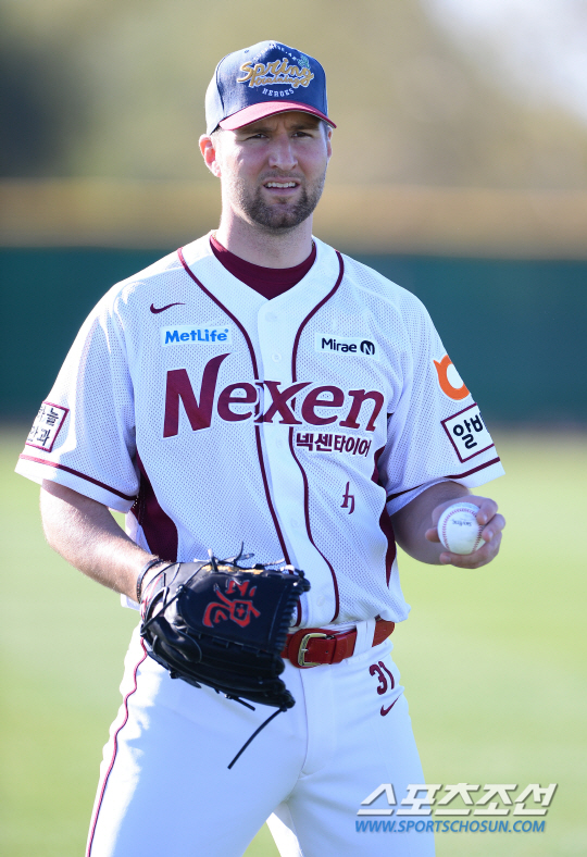 넥센 히어로즈의 새 외국인 투수 피어밴드가 연습경기에서 첫 선을 보였다.