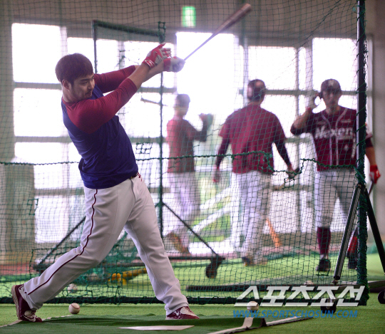 23일 일본 오키나와 구시가와 구장에서 넥센 히어로즈의 훈련이 열렸다. 스카우트가 지켜보는 가운데 넥센 박병호가 타격 훈련을 하고 있다. 오키나와(일본)=김경민 기자 kyungmin@sportschosun.com / 2015.02.23. |