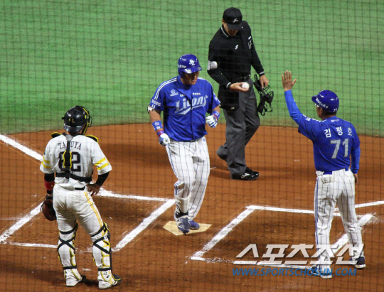 야후돔 올해 첫 홈런은 내 꺼.' 삼성 라이온즈 최형우가 27일 일본 후쿠오카 야후오크돔에서 열린 소프트뱅크와의 친선경기에서 1-0으로 앞선 6회초 우월 솔로포를 날린 뒤 홈을 밟고 있다. 144㎞ 가운데직구를 가볍게 잡아당겨 라인드라이브로 넘어갔다. 최형우의 홈런은 야후오크돔이 펜스를 당긴 뒤 나온 첫 홈런이다. 삼성은 오키나와에서 전지훈련 중인 27일 후쿠오카로 넘어와 소프트뱅크와 친선경기를 벌인 뒤 28일 다시 오키나와로 들어가 3월 4일까지 전지훈련을 계속한다. 후쿠오카(일본)=권인하 기자 indyk@sportschosun.com