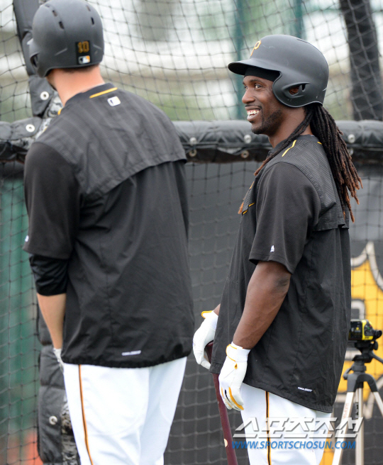 피츠버그 파이어리츠의 강정호가 1일(한국시간) 미국 플로리다 주 브래든턴의 파이어리츠 시티에서 펼쳐지고 있는 팀의 공식훈련에 참가해 구슬땀을 흘렸다. 강정호와 함께 프리배팅에 나선 '해적선장' 앤드류 맥커친이 파워 넘치는 스윙을 선보이고 있다.