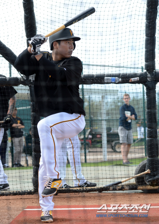 피츠버그 파이어리츠의 강정호가 2일(한국시각) 미국 플로리다 브래든턴의 파이어리츠 시티에서 열린 스프링캠프에서 타격연습을 하고 있다. 브래든턴(미국)=허상욱 기자 wook@sportschosun.com