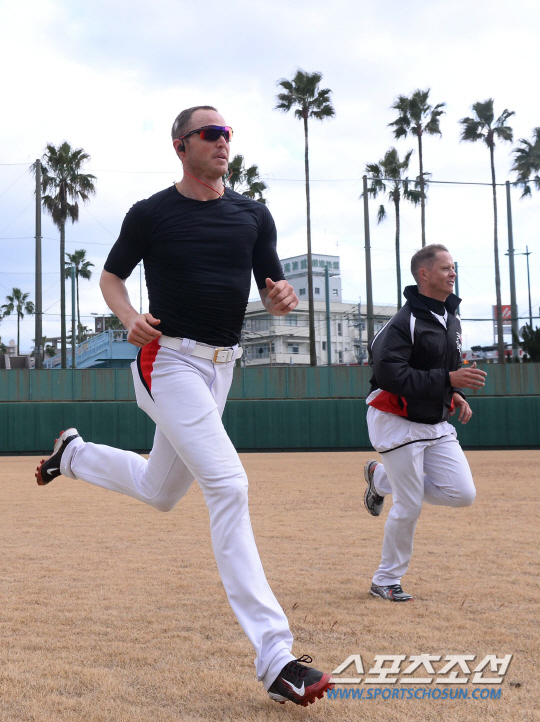 프로야구 제10구단 kt위즈가 1일 훈련장인 가모이케시민구장에서 훈련을 이어갔다. 투수 시스코와 옥스프링이 훈련을 마친후 러닝으로 몸을 풀고있다. 가고시마(일본)=최문영 기자 deer@sportschosun.com /2015.03.01/ |