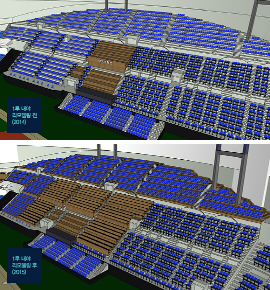| 마산구장 리모델링 설명도. 올해 NC는 마산구장을 대대적으로 손봐 관중들의 관전 편의성을 높였다. |